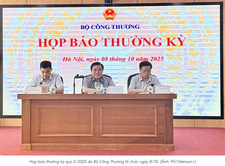 Trong buổi họp báo thường kỳ quý 3/2025 do Bộ Công Thương tổ chức chiều ngày 8/10, lãnh đạo Bộ Công Thương cho biết Bộ đang tiếp tục thúc đẩy xuất khẩu, đa dạng hóa thị trường, mở rộng xuất khẩu.