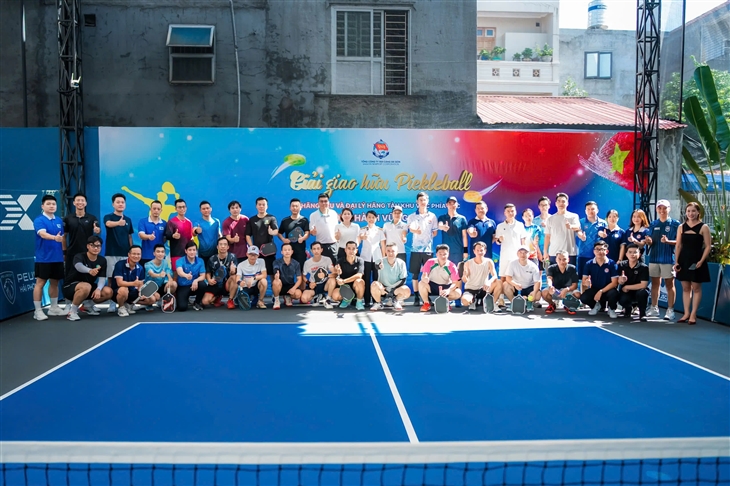 Hình 2: Đại diện Ban tổ chức Tân Cảng Sài Gòn và các VĐV tham dự Giải giao hữu Pickleball