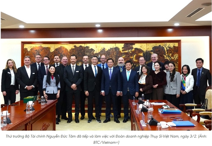 Ngày 3/2, Thứ trưởng Bộ Tài chính Nguyễn Đức Tâm đã có buổi tiếp và làm việc với Đoàn doanh nghiệp Thụy Sĩ-Việt Nam (SVEF) do ông Philipp Roesler, Chủ tịch Tổ chức Diễn đàn Kinh tế Thụy Sĩ-Việt Nam dẫn đầu. Buổi làm việc tập trung thảo luận về các cơ hội hợp tác tài chính và đầu tư trong bối cảnh Việt Nam đang bước vào "Kỷ nguyên mới" với những mục tiêu tăng trưởng bứt phá.