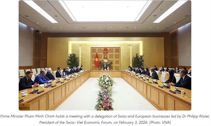 At a February 3 meeting with a delegation of Swiss and European businesses led by Dr Philipp Rösler, President of the Swiss–Viet Economic Forum (SVEF), the PM commended the forum and Rösler for their active role in connecting Vietnam with partners, promoting investment cooperation and enhancing Vietnam’s profile among European and global business communities.
