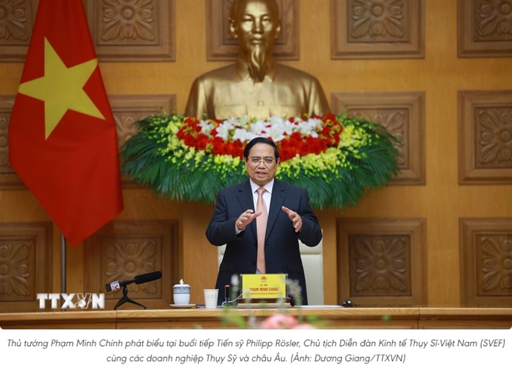 Thủ tướng mong các doanh nghiệp Thụy Sĩ và châu Âu đầu tư trực tiếp và gián tiếp, chuyển giao công nghệ, đào tạo nguồn nhân lực, chia sẻ kinh nghiệm quản trị phát triển các ngành ưu tiên của Việt Nam.