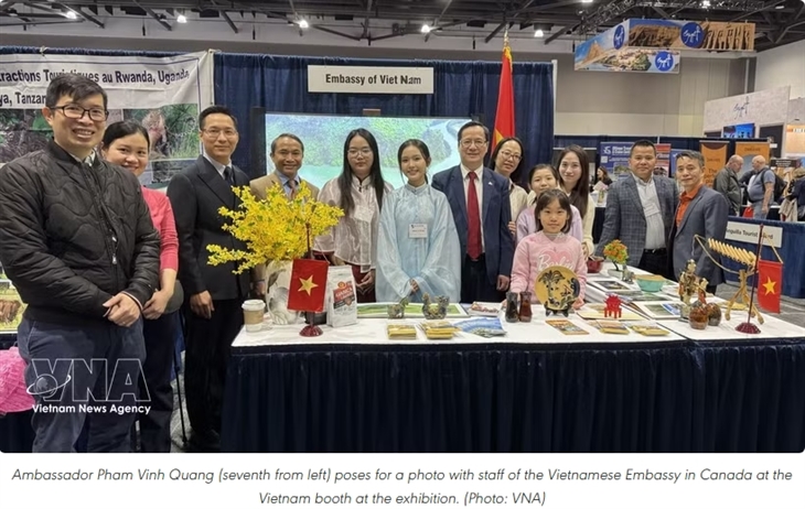 The Vietnamese Embassy in Canada joined the exhibition to promote Vietnam as an attractive travel destination. With support from domestic tourism companies and tour operators, the Vietnam booth attracted attention thanks to its well-designed displays and informative materials.