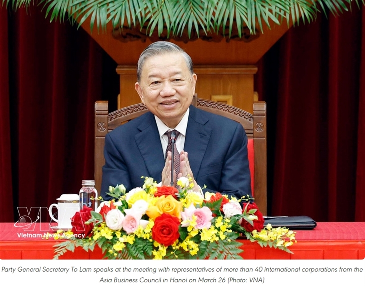 Party General Secretary To Lam affirmed that Vietnam will continue to encourage domestic enterprises to expand partnerships with foreign investors, while directing legislative, executive and judicial bodies, along with agencies in the political system, to create the best possible conditions for ...