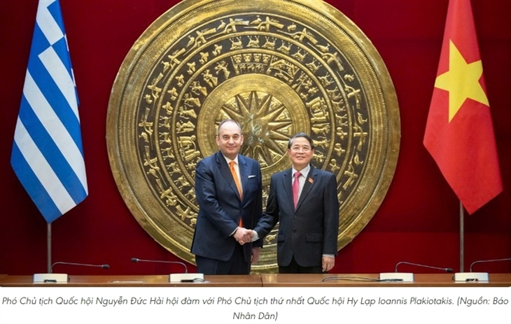 Hội đàm giữa Phó Chủ tịch Quốc hội Nguyễn Đức Hải và Phó Chủ tịch thứ nhất Quốc hội Hy Lạp Ioannis Plakiotakis nhấn mạnh tăng cường hợp tác hai bên, thúc đẩy thương mại-đầu tư và phối hợp chặt chẽ tại các diễn đàn đa phương.